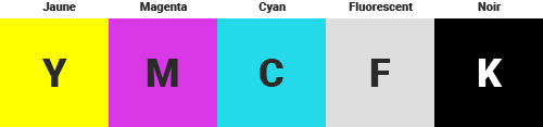 Ce ruban est composé de 5 panneaux : Jaune, Magenta, Cyan, Fluorescent et Noir.