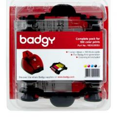 Kit complet : film + cartes + kit nettoyage Evolis Badgy