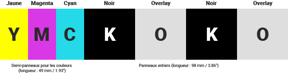 Les panneaux jaune, magenta et cyan ont la moitié de la longueur décrite ci-dessous :