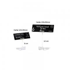 Ces cartes sont idéales pour l'étiquetage des prix et en particulier pour les boulangeries (carte de 150 mm de long conforme au décret français sur l'étiquetage des produits de boulangerie 78-89/P).