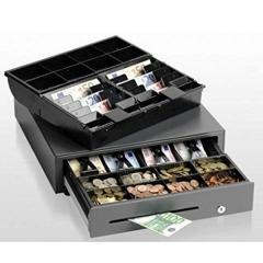 Tiroir-caisse CB-2002 FN, ouverture avant, dimensions (LxHxP): 410x114x415mm, 4 compartiments à billets (vertical), 8 compartiments à pièces, 1 compartiment à chèques, serrure 3 positions, connecteur imprimante PDV