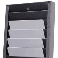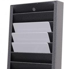 Casier mural en métal laqué coloris gris, destiné dans les entreprises à la gestion des badges du personnel (gestion horaire, présence, accès), ou dans les crèches, pour le contrôle de présence des enfants.