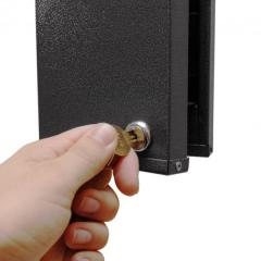 Armoire murale sécuritaire à 2 volets réalisée en métal laqué coloris gris, équipée d'une double sécurité (1 verrou position haute, 1 verrou position basse) afin de sécuriser l'accès aux cartes. Fourni avec 1 jeu de 2 clefs.