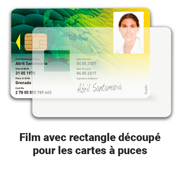 Le film de plastification (lamination) peut être standard, avec des patchs identiques sur le ruban (pleine carte ou avec une découpe intelligente), ou avec différents patchs en alternance.