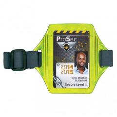 Porte-badge brassard en PVC réfléchissant jaune fluo.