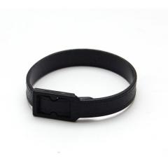 Lanière de bagage noire ou blanche en PVC avec une boucle pour fixer l'étiquette d'identification.