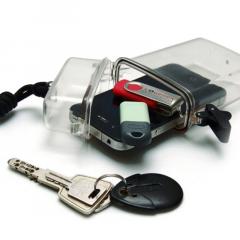 Ce boîtier étanche pour “smartphone” est livré avec un cordon noir.