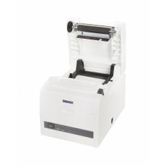 imprimante tickets, thermique direct, 8 pts/mm (203 dpi), largeur de papier variable (58/80 mm), largeur d'impression (max.): 72 mm, 160 mm/s, double interface (RS232, USB), massicot, ESC/POS, inclus: câble (USB), cordon secteur (UE), adaptateur de largeur de papier, étrier de fixation murale, couleur: blanc