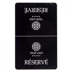 Chevalet de table noir "Réservé" avec une impression en blanc imprimée de 2 côtés