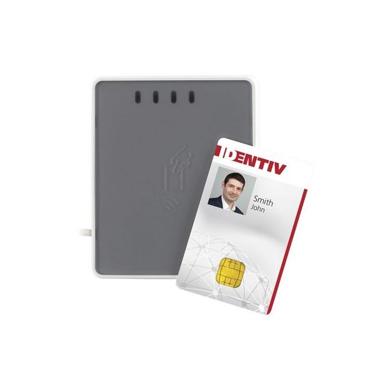 Le lecteur de carte à puce à double interface uTrust 4701 F d'Identiv est relié à un PC et combine les technologies avec contact, sans contact et NFC. Il prend en charge la technologie ISO / CEI 7816 et 13,56 MHz.