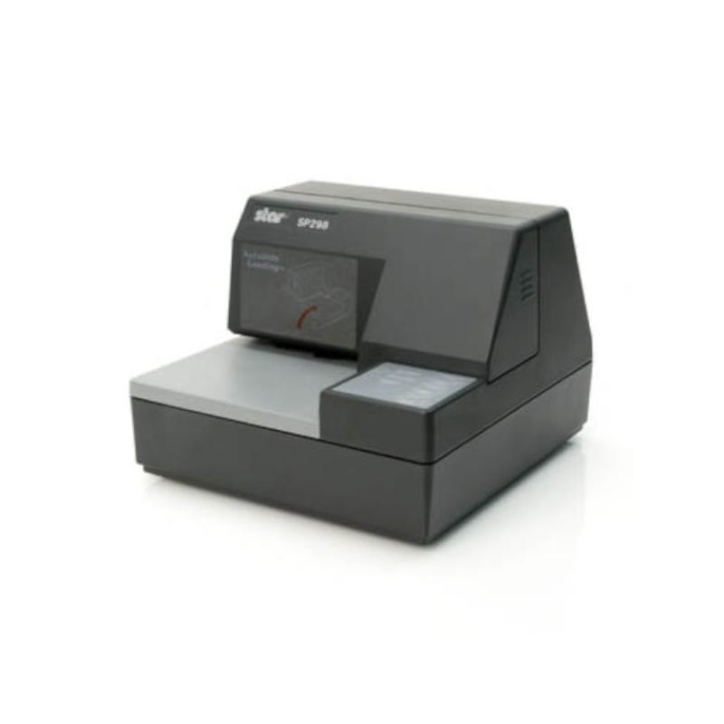 La SP298 est dotée d’une tête d’impression de haute qualité pour l’impression de graphismes et de caractères spéciaux et de la fonctionnalité AutoSide Loading™ pour le positionnement et l’alignement corrects des formulaires. L’utilisateur se contente d’insérer un document dans la fente latérale de la station, et l’imprimante effectue la pression automatique des documents, l’alignement instantané du haut de la page, et l’éjection sélectionnable avant ou arrière des documents.