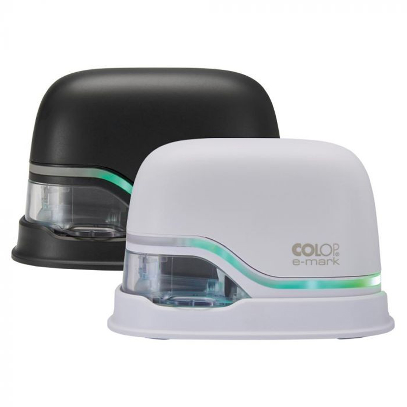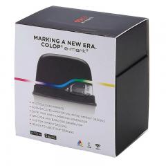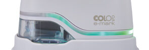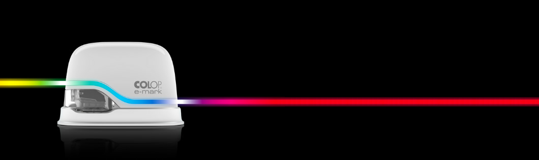 Le COLOP e-Mark est un appareil de marquage électronique et mobile qui permet de créer ses propres empreintes depuis n'importe quel smartphone et tablette à l'aide d’une application, de les modifier et de les imprimer en couleur avec un simple mouvement latéral.