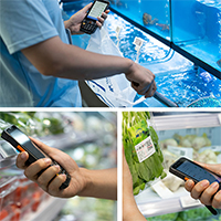 L2Ks facilite votre travail de picking. Les cueilleurs peuvent rechercher et numériser des articles pour exécuter les commandes en ligne avec les L2K, et les codes-barres généralement difficiles à lire et l'environnement difficile courant sur les marchés des produits frais n'apportent aucun problème aux L2K robustes avec un scanner puissant.