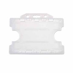 Ce porte-badges se présente au format horizontal et peut contenir 2 cartes au format CR-80 (format carte bancaire). Grâce à son ouverture sur 2 faces, vous bénéficiez d’une lisibilité optimale des informations inscrites sur chacun des 2 badges. L’insertion et l’extraction des cartes se font facilement sur chacun des côtés du porte-badges..