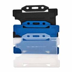 Ce porte-badges se présente au format horizontal et peut contenir une carte au format CR-80 (format carte bancaire). Grâce à son ouverture sur une face, vous bénéficiez d’une lisibilité optimale des informations inscrites sur le badge. L’insertion et l’extraction de la carte se font facilement sur la droite ou sur la gauche du porte-badges.