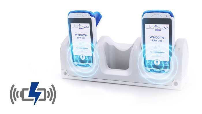 Les terminaux de libre-service doivent être capables de résister à l'utilisation la plus rude de la part de vos clients et de votre personnel, jour après jour. Des contacts de charge endommagés ou sales résultant d'une manipulation constante affectent sérieusement le risque de panne et ont un impact important sur votre retour sur investissement (ROI). Le Joya Touch est doté d'une technologie de charge sans fil unique et il ne lui faut que deux heures pour atteindre sa pleine capacité. Même une courte charge de 15 minutes offre plus de 70 minutes d'utilisation continue. Il suffit de placer votre terminal dans le chargeur pour ne plus avoir à se soucier de l'efficacité de la charge. Ces unités faciles à entretenir peuvent être facilement nettoyées, ce qui élimine le besoin d'une maintenance coûteuse ou de temps d'arrêt imprévus. Êtes-vous prêt pour l'action ?
