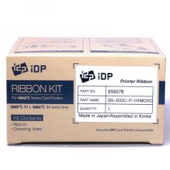 Le ruban couleur à panneaux courts IDP Smart 659378 HYMCKO possède des panneaux Y, M et C de taille réduite pour imprimer une image en couleur sur la moitié de la carte et un panneau K (noir) et O (overlay) complet pour imprimer des textes détaillés et des codes-barres avec protection amélioration de la durabilité des cartes). Idéal pour la personnalisation à moindre coût de cartes d'identité préimprimées.