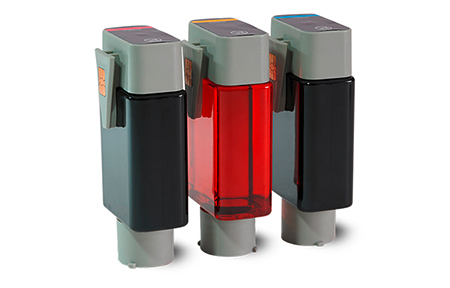 - Réservoirs d'encre individuels – La toute nouvelle technologie d'encre très avancée utilisée par la LX4000e est unique dans le secteur. Elle est dotée d'une tête d'impression préamorcée réutilisable alimentée par des tubes provenant de trois grands réservoirs d'encre CMJ distincts (3 x 60 ml).