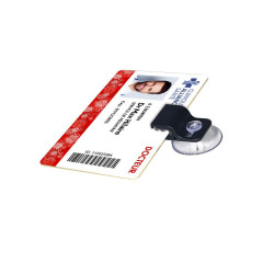 L’attache Grip Ventouse vous permet de fixer votre badge ou votre carte directement sur n’importe quelle surface lisse, et notamment les surfaces vitrées comme un pare-brise véhicule. Très simple d’utilisation, il vous suffit de glisser la carte dans la pince prévue à cet effet (pas besoin de la percer ni de la coller).