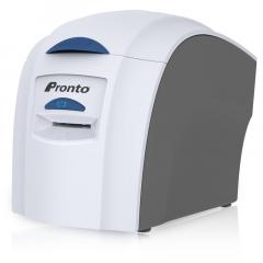 La Magicard Pronto est une imprimante directe sur carte (sublimation), idéale pour si vous souhaitez imprimer un visuel simple sur des cartes en PVC et non sur des cartes de contrôle d'accès à puce. La Pronto est destinée aux petits volumes d'impression, donc si vous avez besoin de cartes en petites quantités (c'est-à-dire moins de 100) la Pronto sera parfaite. Si vous avez besoin d'imprimer sur des cartes de contrôle d'accès, d'avoir un design plus complexe ou d'imprimer un plus grand nombre de cartes,il faudra alors se diriger vers la techhologie d'impression retransfert qui sera bien plus adaptée.
