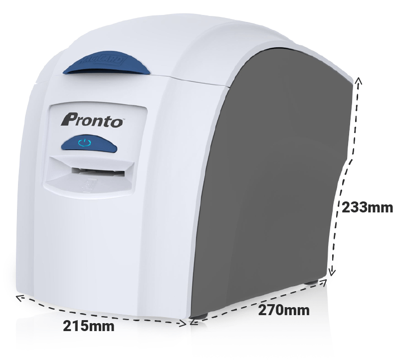 Légère mais robuste, la Pronto a un faible encombrement et peut être placé sur n'importe quel bureau. Sa portabilité et sa polyvalence vous permet d'emmener l'imprimante Pronto partout avec vous. Emettez des cartes au bureau un jour, et lors d'un événement ou d'une exposition le lendemain.