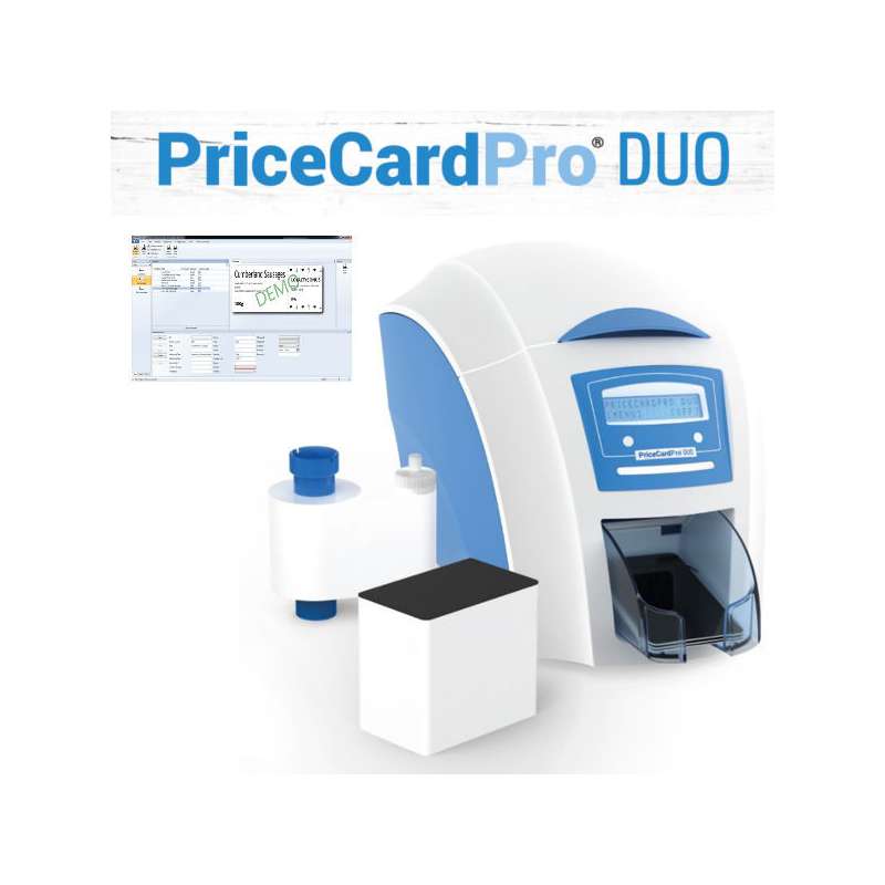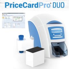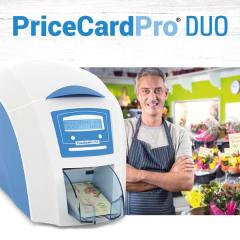 Impression recto-verso en couleur d'étiquettes de prix. La PriceCardPro DUO imprime les étiquettes de prix au format cartes de crédit. Cette solution offre une flexibilité totale, y compris l'impression en couleur et la possibilité d'imprimer sur les deux côtés de la carte en un seul passage.