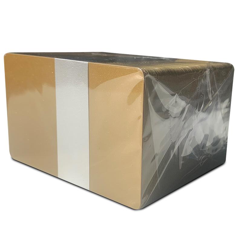 Utilisez les cartes PVC de couleur or clair teintées dans la masse avec le ruban monochrome de votre imprimante à cartes plastiques ou étiquettes de prix de marque Evolis, Zebra, Datacard, Fargo by HID, Magicard ...