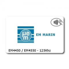 Le EM4450/EM4550 est un circuit intégré CMOS destiné à être utilisé dans les transpondeurs électroniques à lecture/écriture RF. La puce contient 1K Bit d'EEPROM (mémoire) qui peut être configuré par l'utilisateur, permettant une zone inhibée en écriture, une zone protégée en lecture, et une zone de lecture en sortie continue à la mise sous tension.