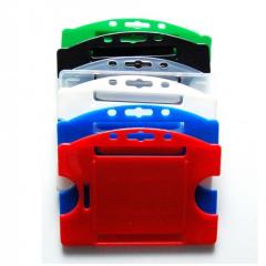 Porte-badge en ABS protection 1 face. Modèles horizontaux : 145-5700 : translucide - 145-5702 : Bleu Roi (661 C) - 145-5704 : Rouge (186 C) - 145-5705 : Vert (348 C) - 145-5706 Noir (Black C) - 145-5707 : Blanc