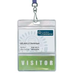 Porte-badge PVC transparent pour carte 86 x 54 mm avec une poche pour petite carte ou étiquette. Modèle vertical : 1453200