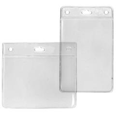 Porte-badge PVC transparent avec bandeau renforcé. Modèles avec fond couleur disponibles sur demande. Usage professionnel.