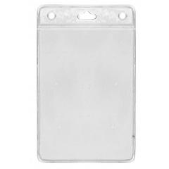 Porte-badge PVC transparent avec bandeau renforcé. Modèles avec fond couleur disponibles sur demande. Usage professionnel.