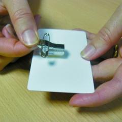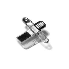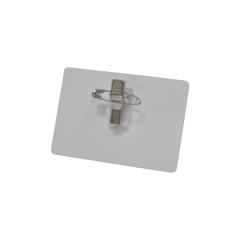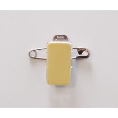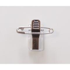 Clip adhésif métal à pince crocodile avec épingle de sûreté.