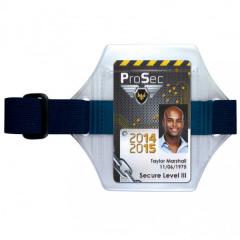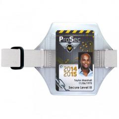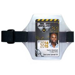 Porte-badge brassard en PVC épais avec élastique réglable.