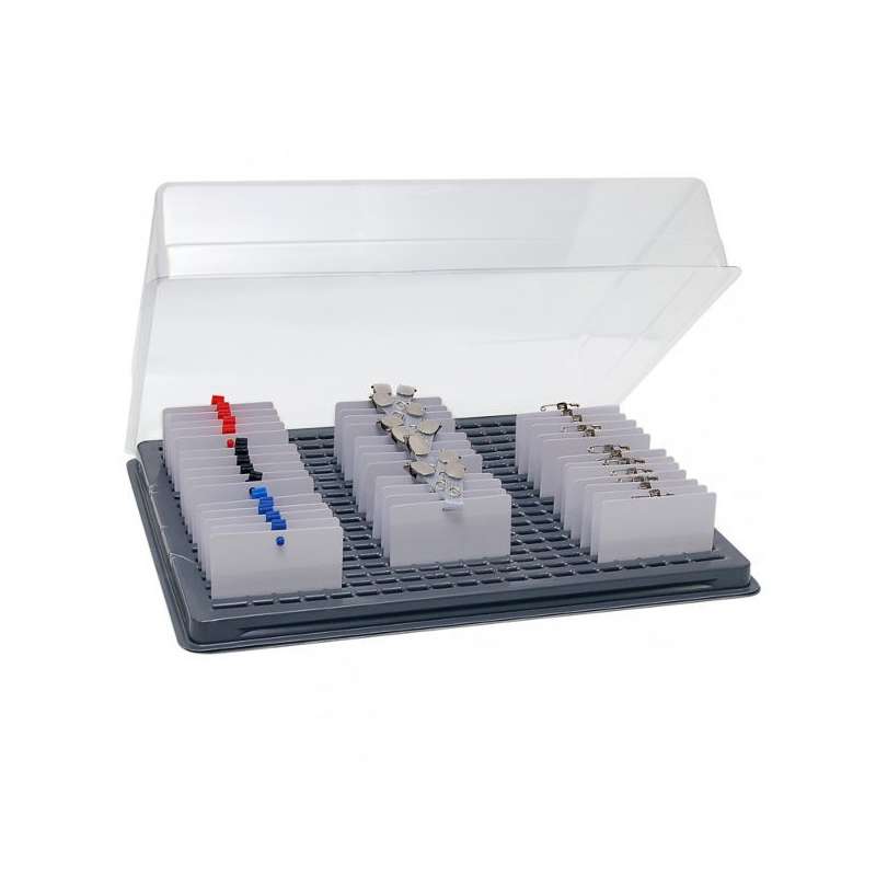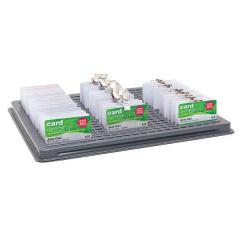 Plateau pour rangement de 76 badges format carte de crédit (86 x 54 mm) et badges conférence (quantité selon format carte), en PVC thermoformé noir avec couvercle cristal amovible. Livré dans un étui carton rigide. Idéal pour faciliter l'accueil de vos visiteurs ou participants lors d'événements, séminaires, salons, conférences, etc...