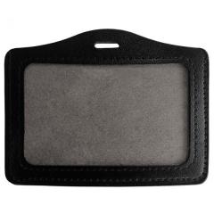 Porte-badge en aspect cuir, avec une face avant  en PVC transparent