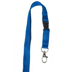 Cordon tour de cou 15mm en polyester plat avec une boucle plastique détachable et une attache crochet métal pour une fixation rapide et facile des cartes et porte-badges.