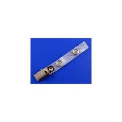 Clip métal à pince bretelle avec lanière vinyle renforcée. Optimale pour une utilisation avec des portes-badges rigides.