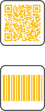 L’insertion de codes-barres ou de QR-codes peut s’avérer intéressante pour certaines applications : contrôle d’accès, cartes de fidélité, cartes cadeaux… Les codes-barres et QR-codes doivent être imprimés en noir pour une lecture correcte. Il faut absolument garder la proportion du code lors de l’agrandissement ou de la diminution de la taille car une distorsion du code empêcherait sa lecture.