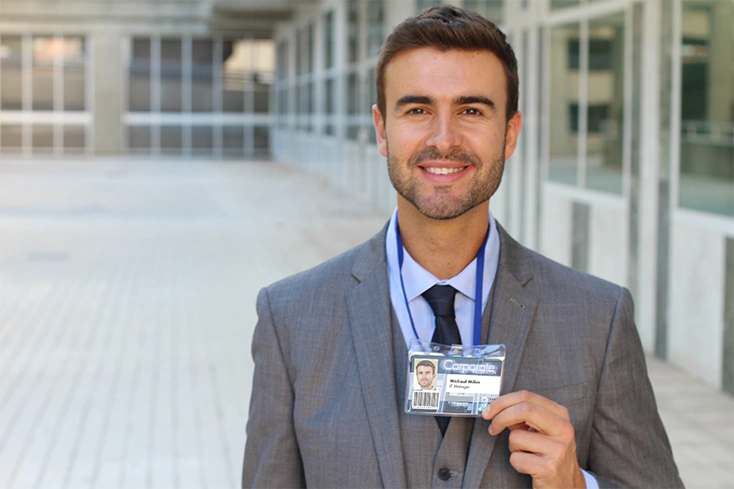 Ajustement au niveau de la sécurité requis dans votre organisation grâce à la diversité des éléments pouvant être intégrés sur les cartes : personnalisation graphique avec photo (identification visuelle), code-barres ou QR codes, encodage de données sur une piste magnétique ou une puce, hologrammes (génériques ou personnalisés), films de lamination pour une protection renforcée, et impression d'éléments invisibles à l'œil nu (micro-textes en ultra haute définition, encre UV).