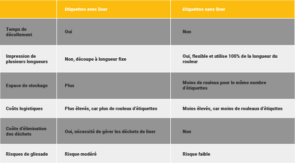 Différences entre les étiquettes avec liner et les étiquettes sans liner