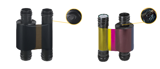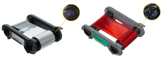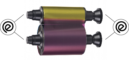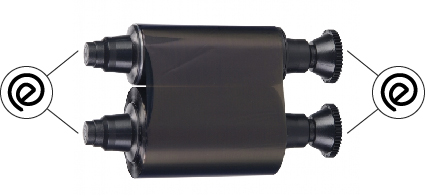 Deux « O » du logo Evolis sont placés sur chaque mandrin du ruban.
