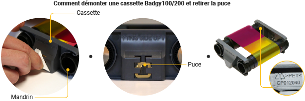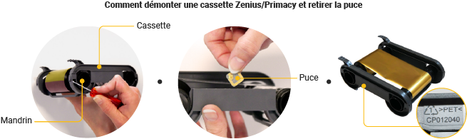 En raison de leurs propriétés chimiques, les rubans d’impression et de sécurité ne sont pas recyclables. Cependant, certains composants du consommable peuvent être recyclés. Pour optimiser le recyclage de chaque élément, le ruban doit être démonté, les étiquettes décollées et la puce retirée (pour les références concernées).