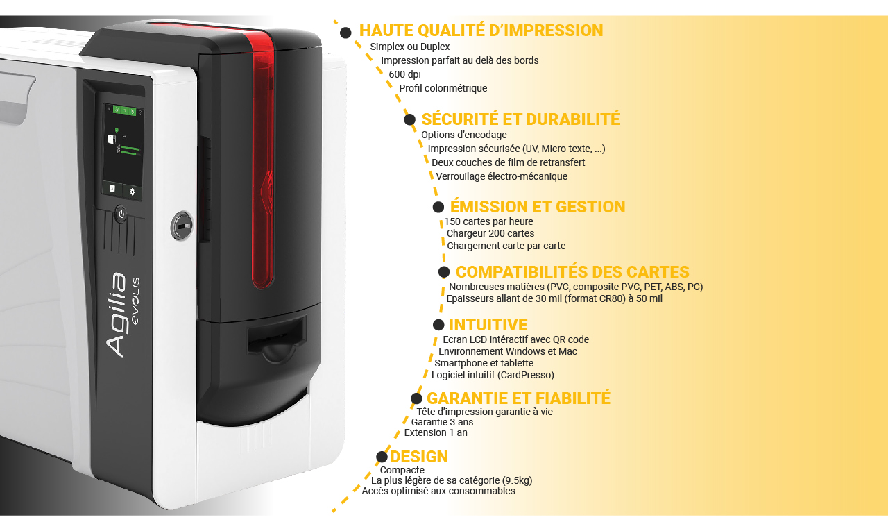 Evolis Agilia possède plusieurs avantages par rapport aux autres imprimantes retransfert :